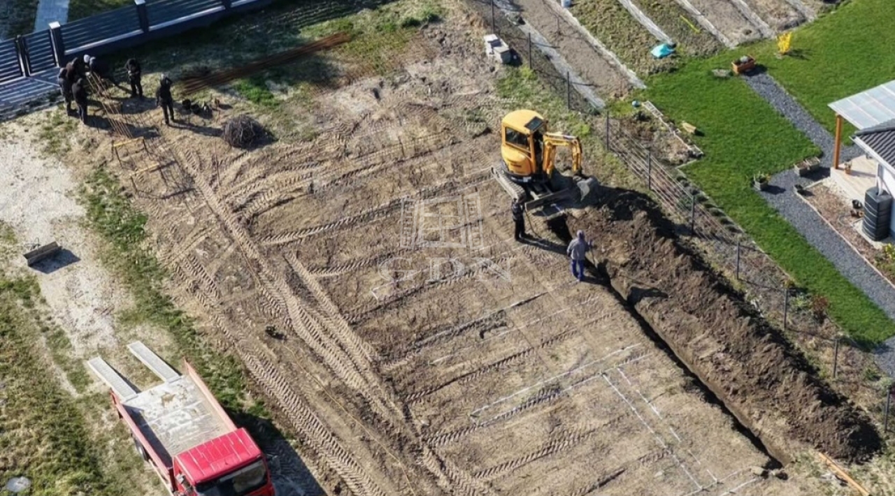 Megkezdődtek egy modern ikerház alapozási munkálatai Balatonkeresztúron, jelen hirdetésben a kisebbik, nettó 42 m²-es lakást kínáljuk megvételre.