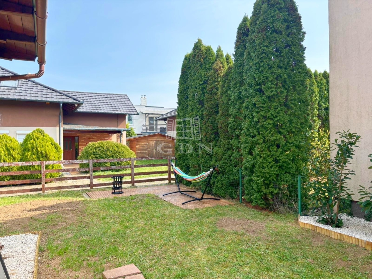 A földszinten egy tágas, világos nappali-étkező található amerikai konyhával, közvetlen kijárattal a fedett teraszra, ahonnan a gondosan kialakított, privát kertre nyílik kilátás. Ezen a szinten kapott helyet egy hálószoba gardróbbal, egy fürdőszoba, valamint egy zárt garázs is.