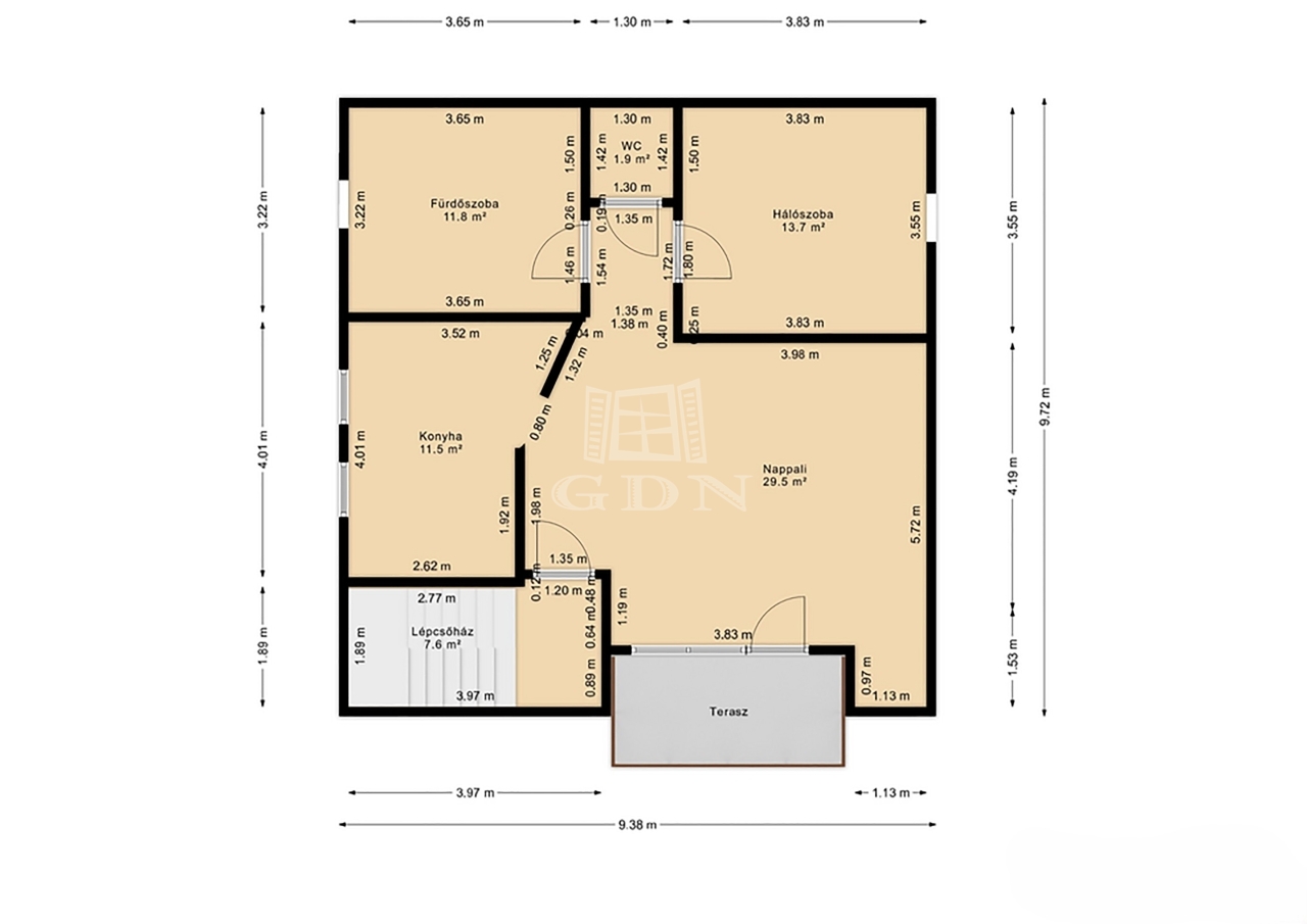 Középső szint (80 m² + 12,6 m² terasz)