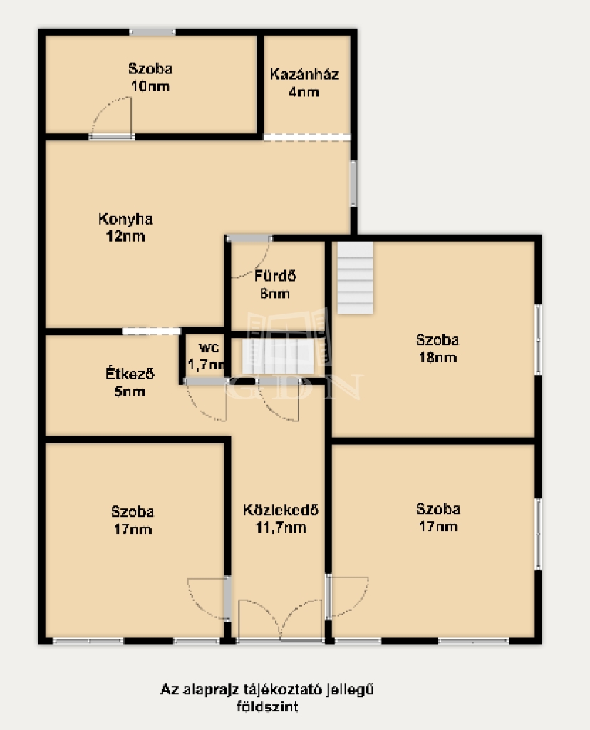 Erről a szintről lépcső vezet fel az emeletekre.