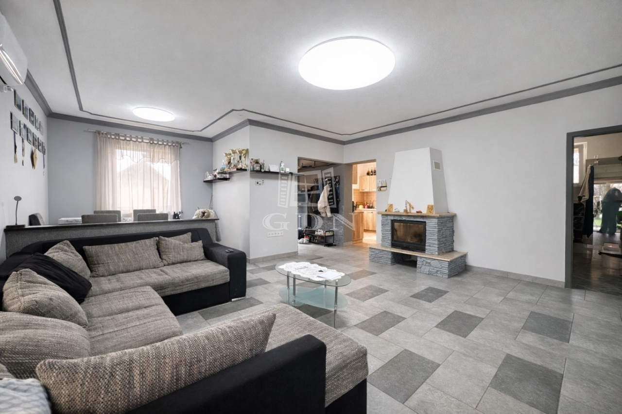 Elosztását tekintve 115m2 hasznos alapterületű. Előszoba, vendég WC, nappali-étkező, konyha, kamra, 3 hálószoba és beépített terasz lett kialakítva.
