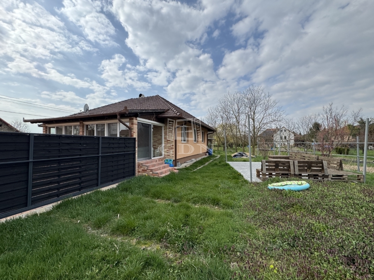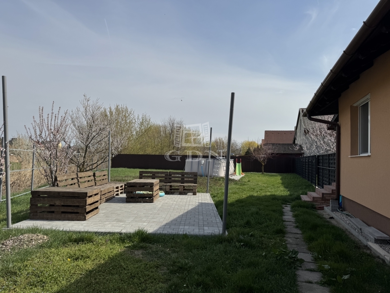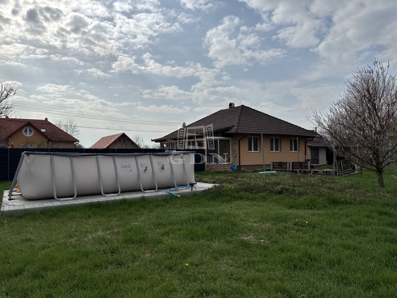 A telek 1877m2, részben körbekerített. Füvesített, egy része térkövezett. Kettő elektromos kapu került az utcafronti részhez. Található pár gyümölcsfa (barack, cseresznye,..) és kerticsap is rajta.
