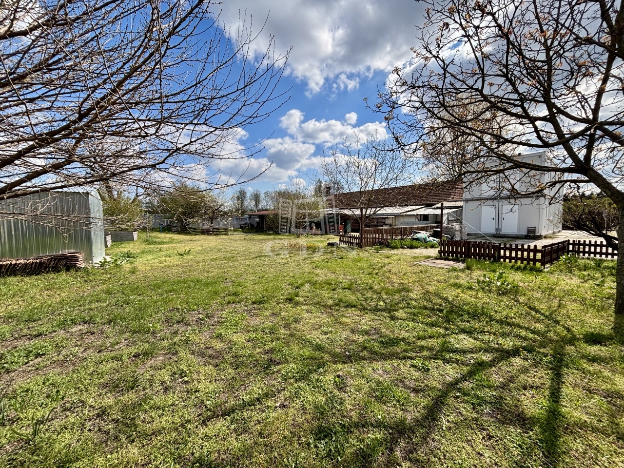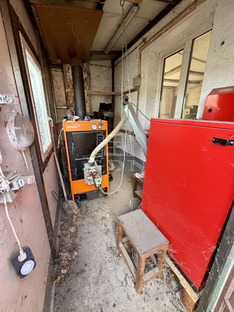 A területen több fedett tároló, valamint egy szerelőaknás garázs is található. A parkolás több jármű számára is kényelmesen megoldott a telken belül.