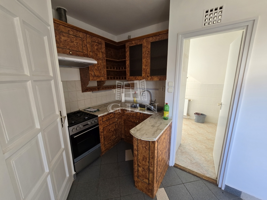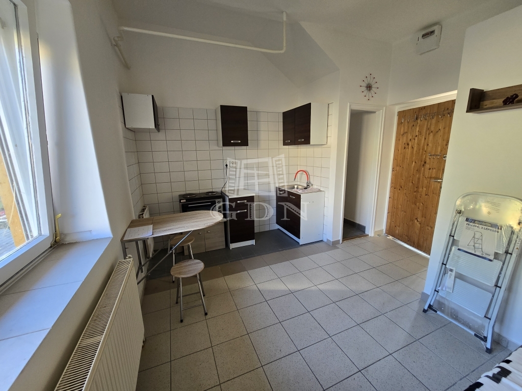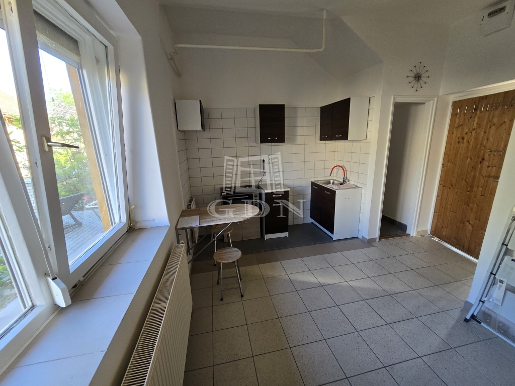 Alsó szinten egy 19 nm szoba, konyha, wc, fürdőszoba tusolóval.