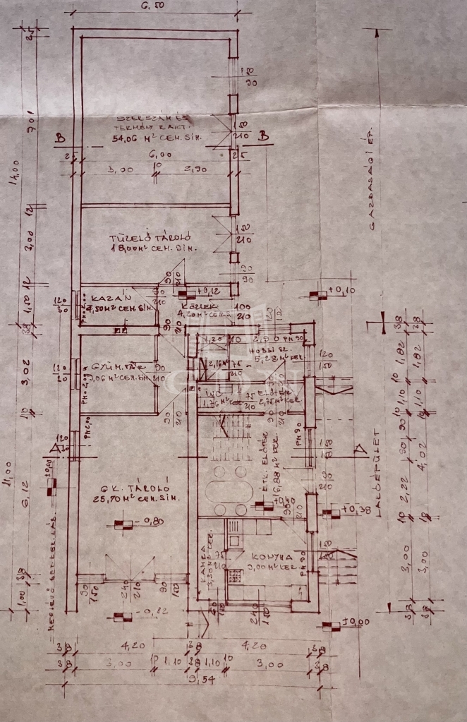 Főépület: 152nm (6+1 szoba, duplakomfort, tároló, konyha + étkező)