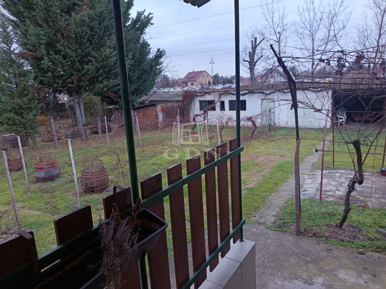 A telek hátsó részén nagy méretű melléképület, és garázs található.