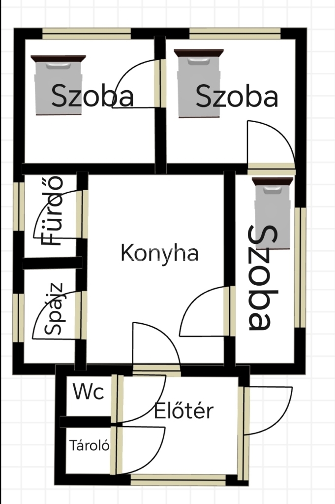 A szobák jelenleg egymásból nyílnak, azonban ez is átalakítható külön nyílóvá.