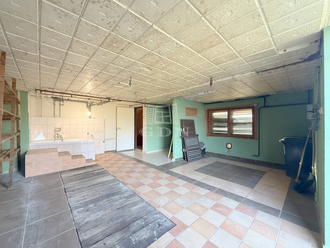 - egy 2 helyiségre felosztott, ablakkal! ellátott 33 m2 - es szuterén szintnek - kiválóan alkalmas otthoni konditerem, iroda, dühöngő kialakítására,