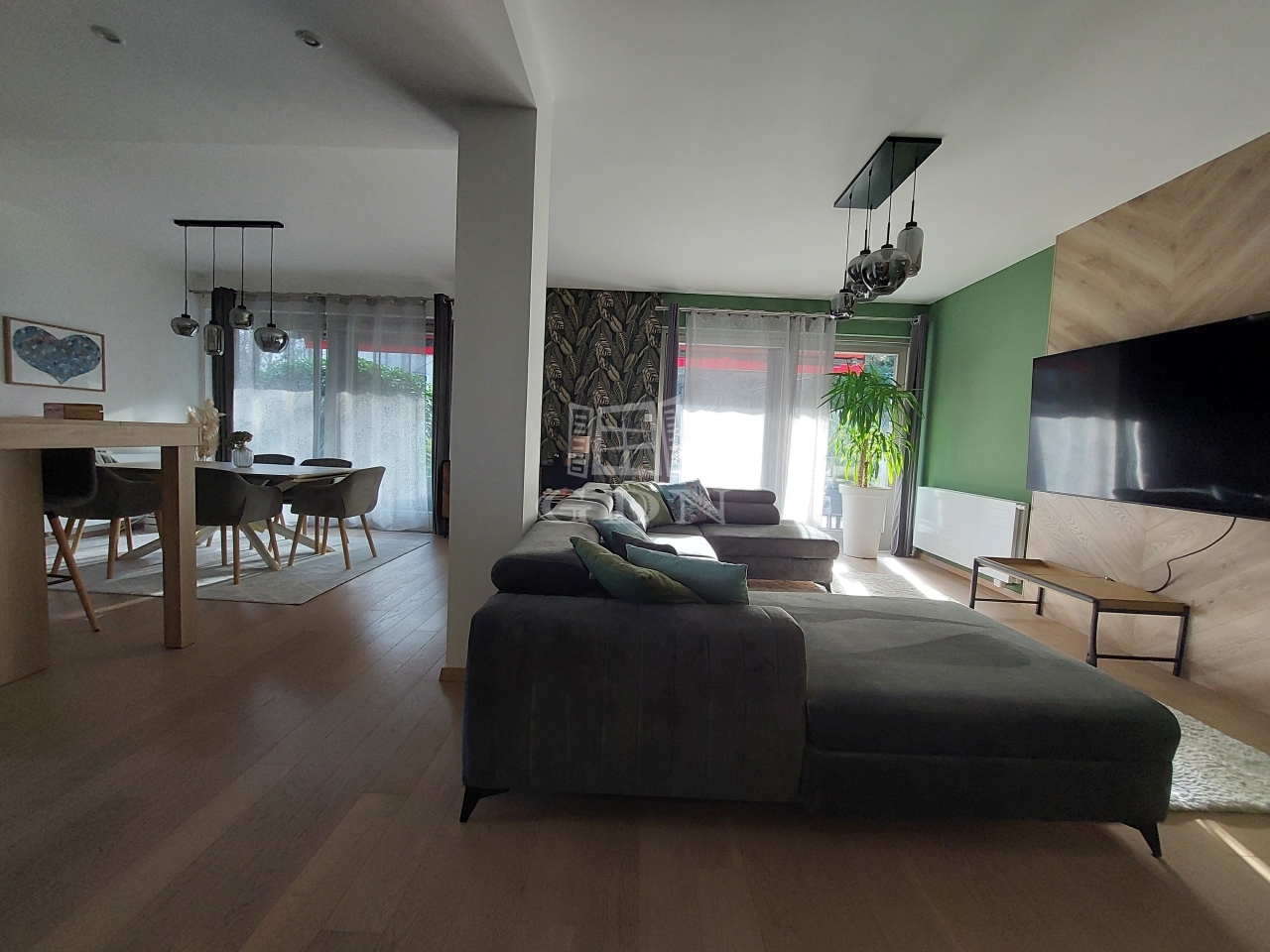 A lakás közvetlen kertkapcsolata és a nagy terasz ideális pihenéshez, családi programokhoz vagy akár vendégek fogadásához is.