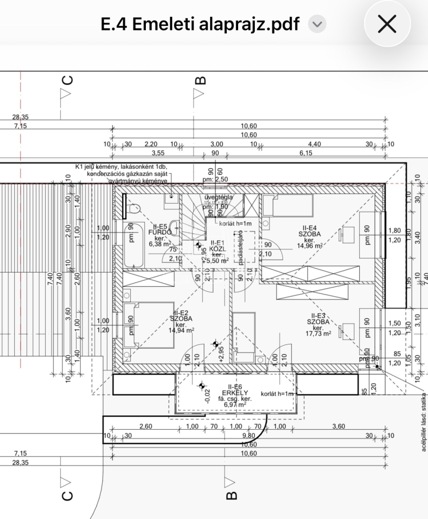 - tetőn- 20cm rockwool kőzetgyapot hőszigetelés, párazáró hőtükrös fólia,