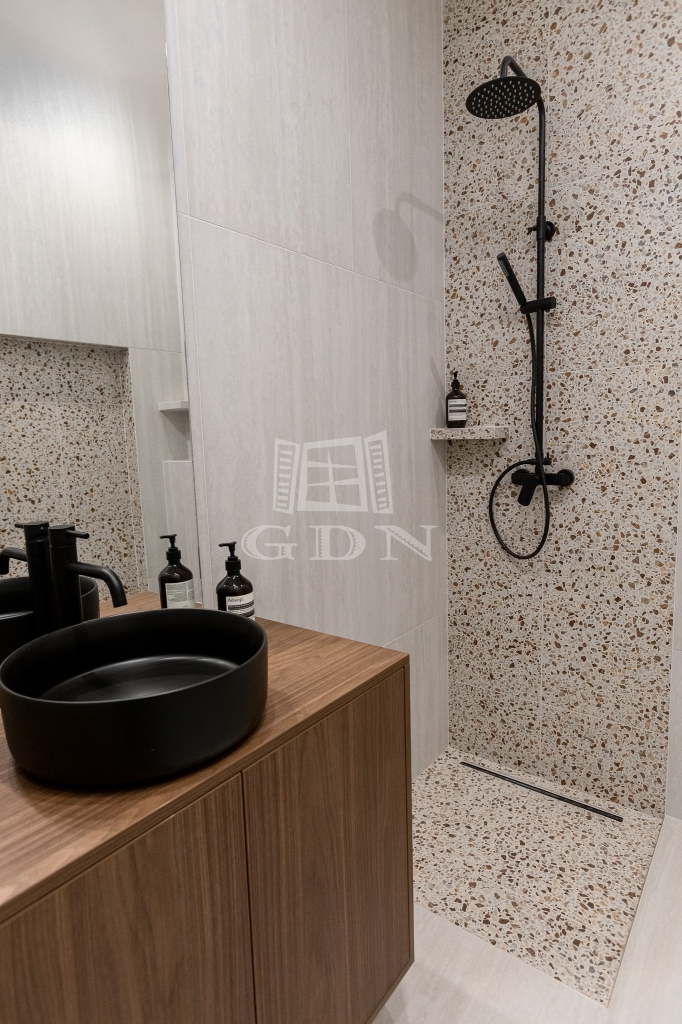 • modern, zuhanyzós fürdőszoba