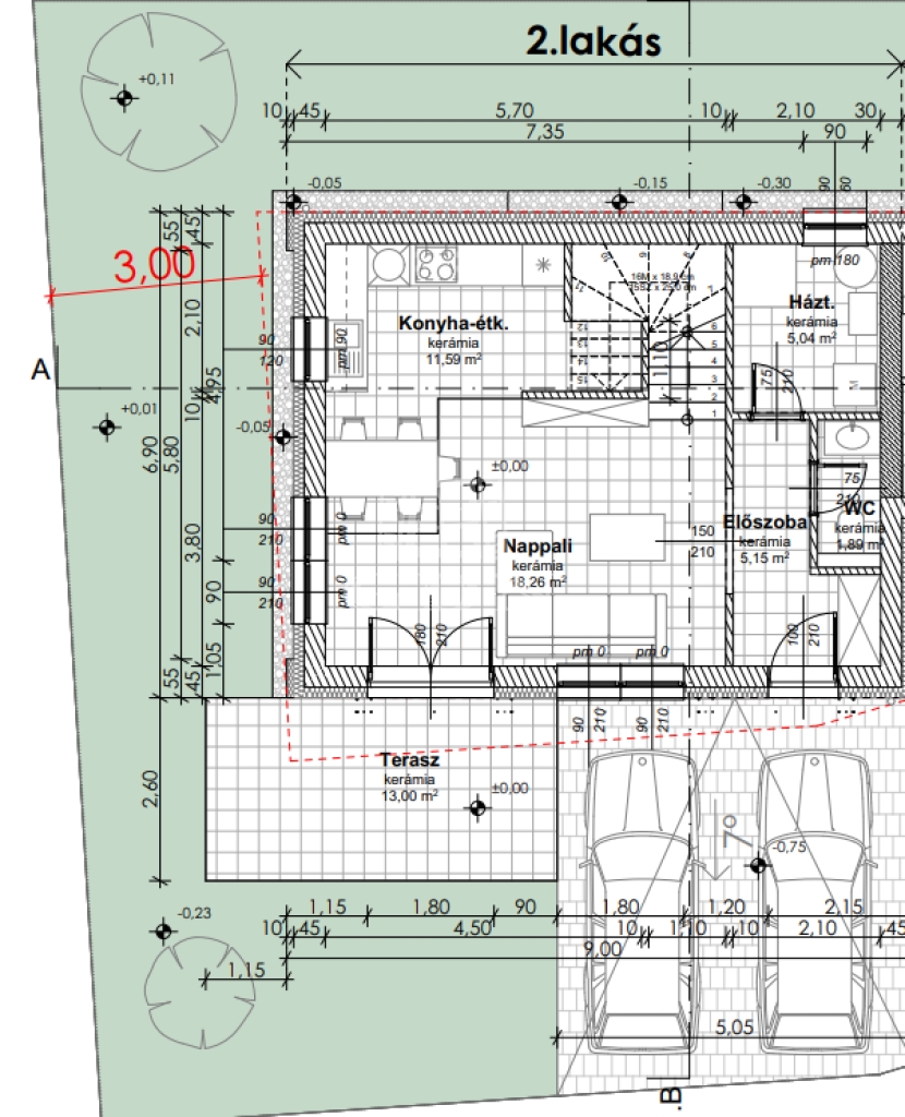 Az ingatlan leköthető 2 db. gépkocsibeállóval - igény szerinti befejezéssel.