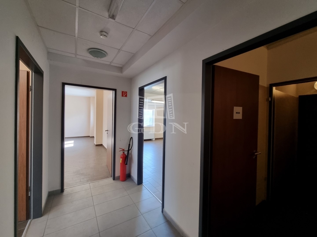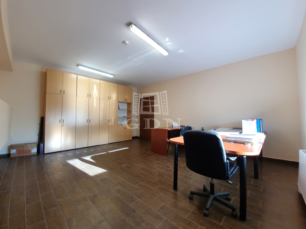 Az épület elosztását tekintve egy utcafronti háromszintes iroda-fejépületből és egy kétszintes, több szekcióból álló, de egybenyitható gyártó-üzemi és/vagy raktár területből áll.