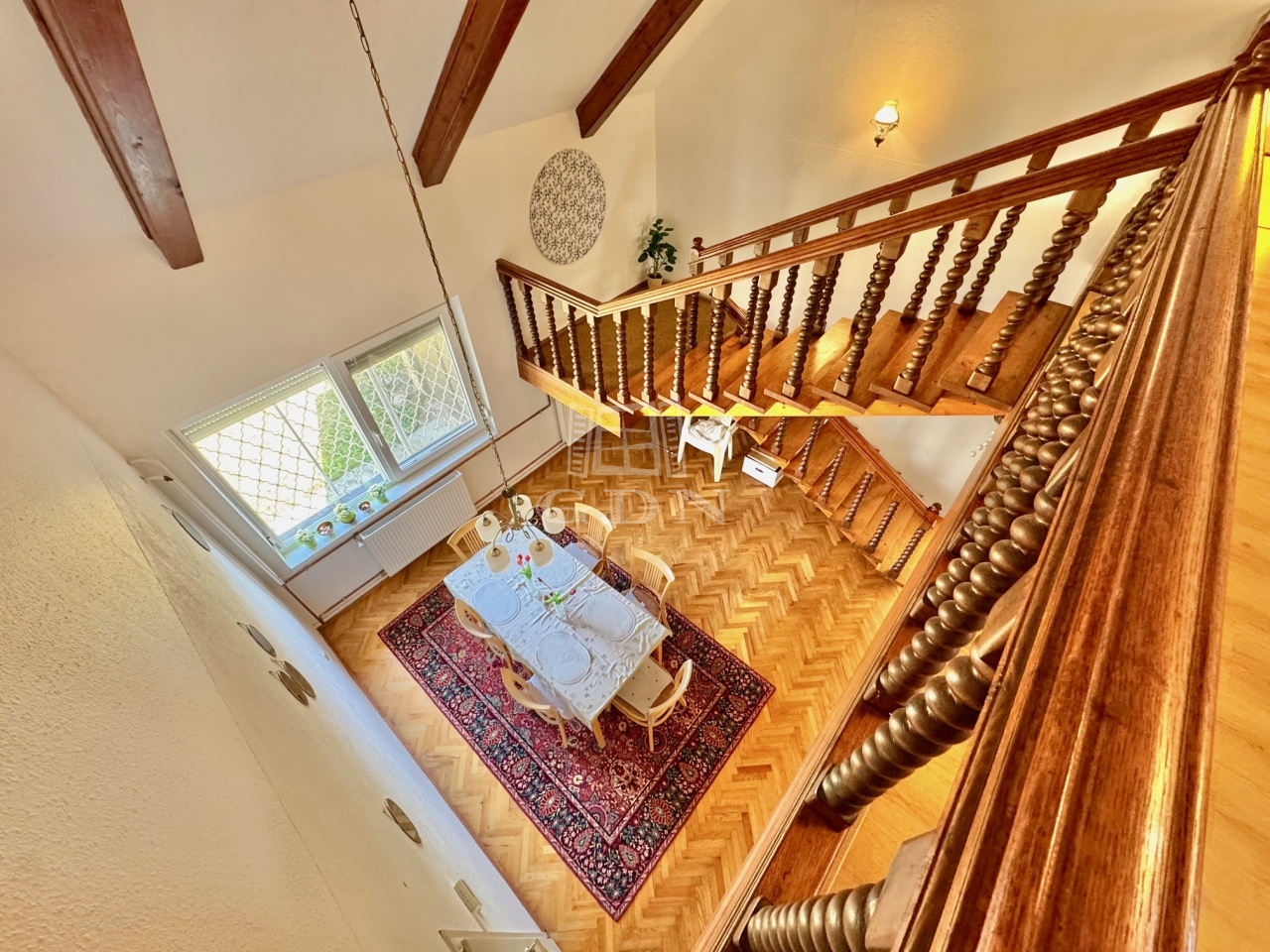 A Balaton északi partjának egyik legszebb városában, Balatonfüreden, kiváló közlekedés és ellátottság mellett, kertvárosi környezetben, 10 perc sétára a vitorlás kikötőtől, és a Tagore sétánytól, 586 m2-es összközműves telken, 1990-ben épült, 190 m2-es lakóterületű, 2 szintes, dupla komfortos, dupla nappalis + 3 hálószobás, a földszinten található nappaliból közvetlen 40 m2 -es teraszkapcsolattal rendelkező, kiváló elosztású, külön nyíló szobás, napos-világos, K-NY-i tájolású, alacsony fenntartású, kombinált gázcirkó és cserépkályha fűtésű, jó állapotú, 2018-ban új thermo ablakokra cserélt, klimatizált, riasztórendszerrel felszerelt családi ház, beépített, gépesített konyhával, nagyméretű tárolóval, garázzsal, úszómedencével, rendezett kerttel, rugalmas költözéssel eladó.