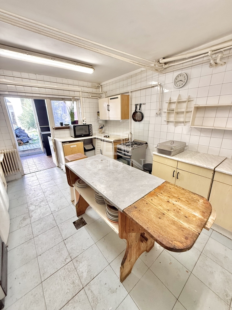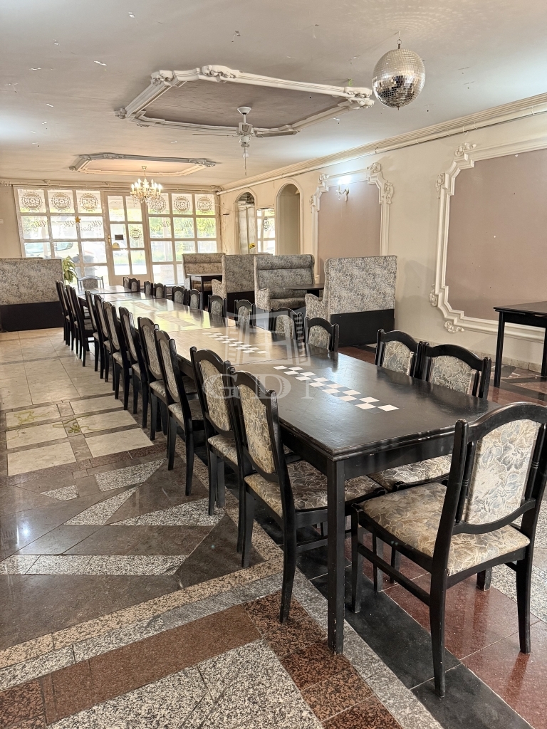 A helyiségben összesen 4 mosdó található: 2 női és 2 férfi, ami nagyobb vendégforgalom esetén is kényelmes használatot biztosít. A konyhából és a nagyteremből egyaránt megközelíthető egy közös belső udvar, amely további lehetőségeket rejt magában, például terasz vagy külön vendégtér kialakítására.