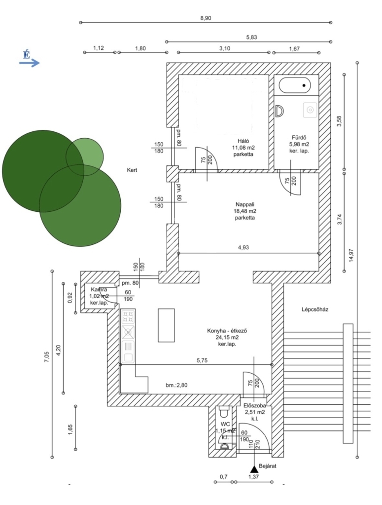 • külön fürdőszoba és WC