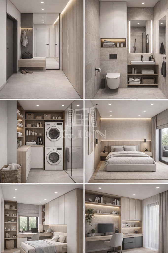 A modern elosztású ingatlan amerikai konyhás nappalival, 3 szobával, 2 fürdőszobával, dolgozósarokkal és külön háztartási helyiséggel rendelkezik 100 nm2-en.