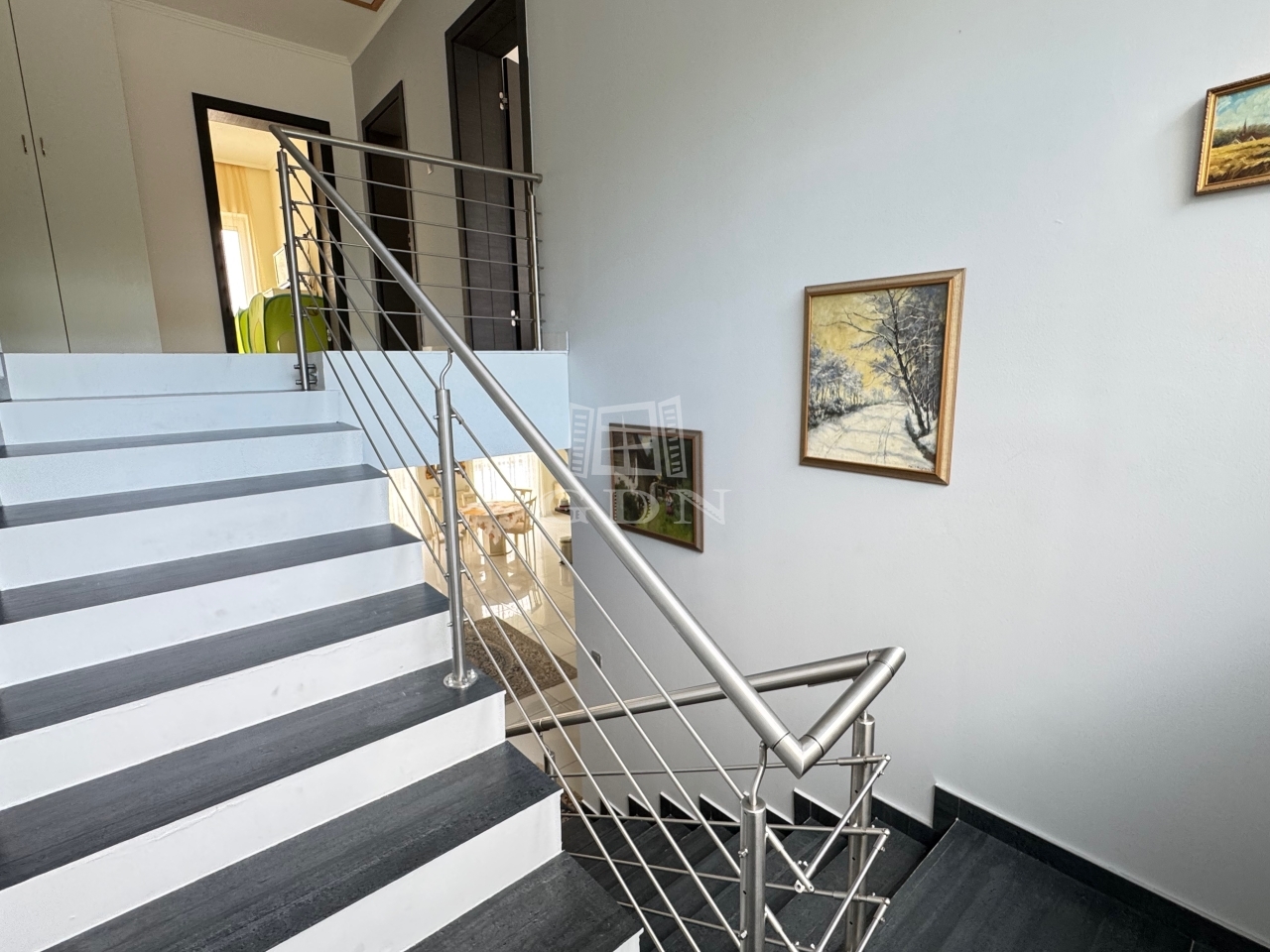 Az emelet érdekessége, hogy a szobákból méretes teraszra tudunk kimenni, ami körbe veszi az emeleti szintet, a mérete összesen 82 m2.