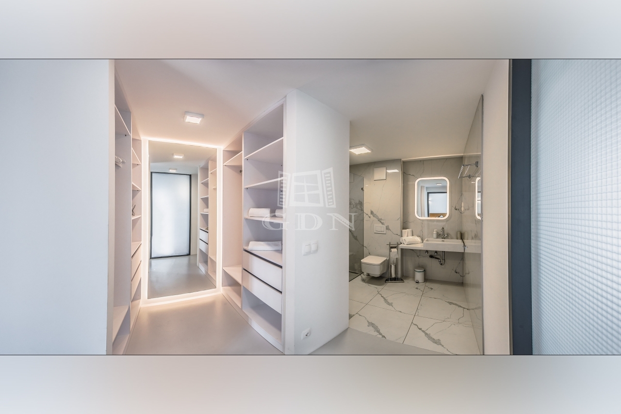 • Elosztás: előszoba, egybenyitott konyha-étkező-nappali, hálószoba, hálófülke, 2 fürdőszoba, gardróbszoba