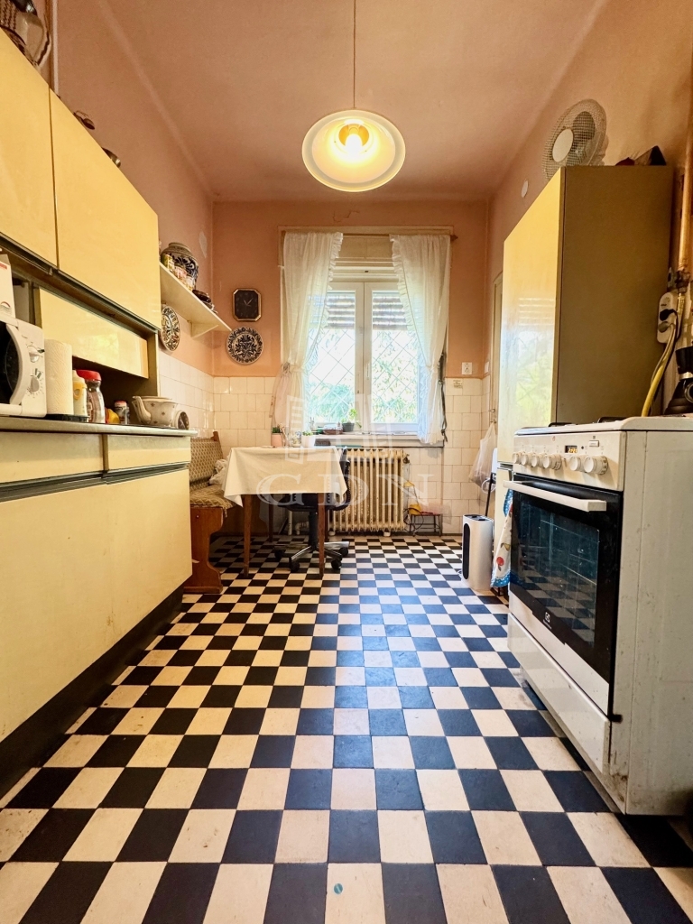 X. kerület kedvelt családiházas övezetében, kiváló közlekedés és ellátottság mellett, 700 nm-es összközműves telken, egyedi adottságokkal rendelkező, 1965-ben épült, 2 szintes, körbejárható, bruttó 200, nettó 150 nm-es lakóterületű, 2 szintes, (garázs/műhely/szuterén 100 nm, lakószint 100 nm), 4 szobás, étkező konyhás, kiváló elosztású, napos világos DK-ÉNY-i fekvésű, gázcirkó és vegyestüzelésű kazán fűtésű, tágas, élhető terekkel rendelkező, szerkezetileg és statikailag is egyaránt jó, belterét tekintve közepes állapotú, klimatizált családi ház, közvetlenül a házból megközelíthető garázzsal, műhellyel, madárcsicsergős, csendes, gondozott, ősfás kerttel, kulturált környezetben eladó.