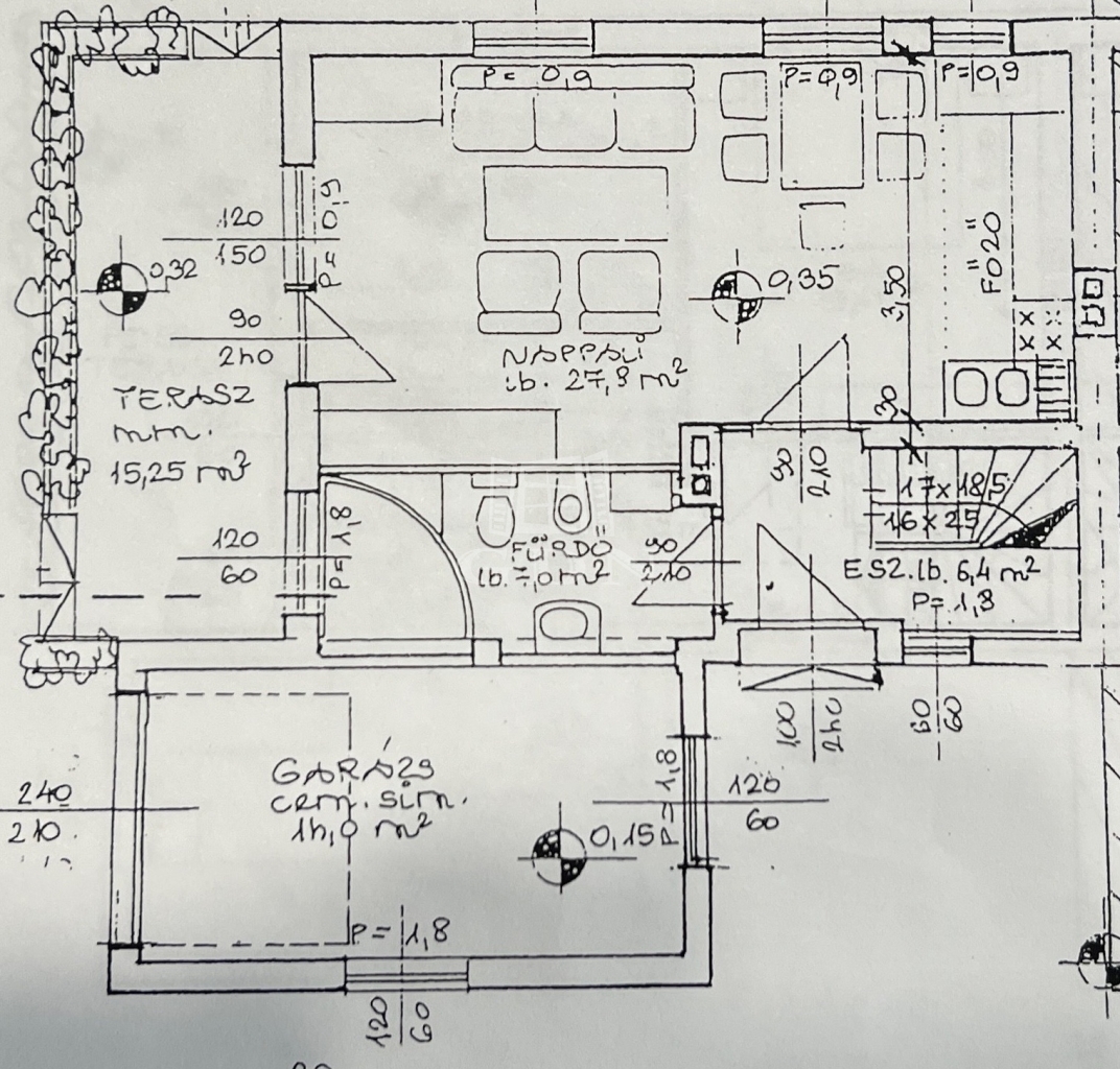 Fűtése: kondenzációs cirkó gázkazán, alsó szinten padlófűtés