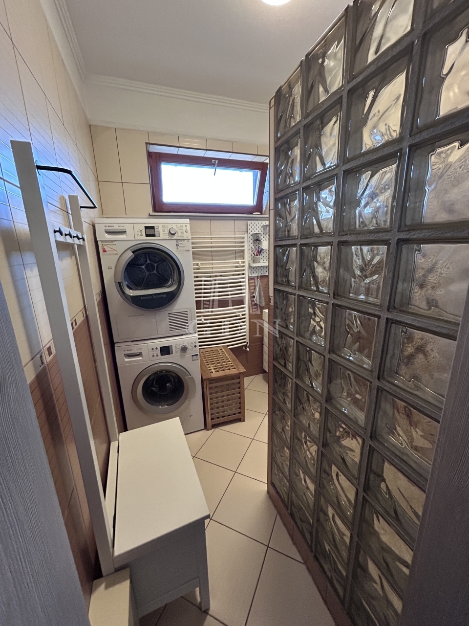 Parkolás: a telken egy zárt, távirányító kapus garázs, és egy nyitott, de fedett autóbeálló található.