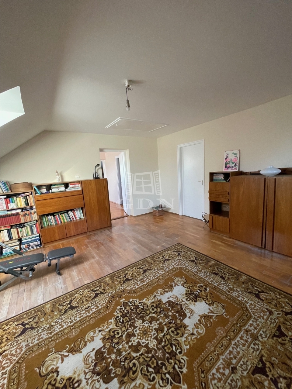 Az emeleti szinten galériás előtér, tágas nappali, két hálószoba, zuhanyzós fürdőszoba (300 literes puffertartállyal) és gardrób található.