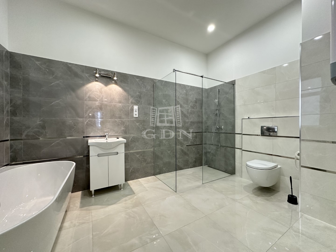 • laminált padló burkolat a szobákban és a nappaliban, minőségi járólap a konyhában és a fürdőkben
