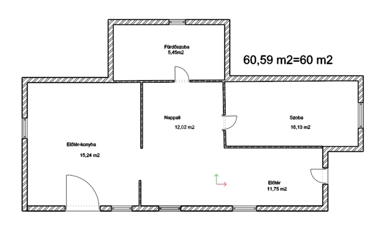 A 60 m²-es ingatlan két szobával rendelkezik, ideális lehet kisebb családok vagy párok számára.