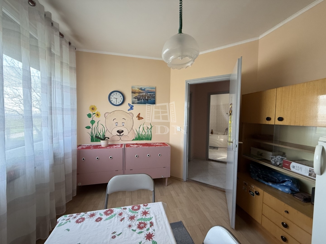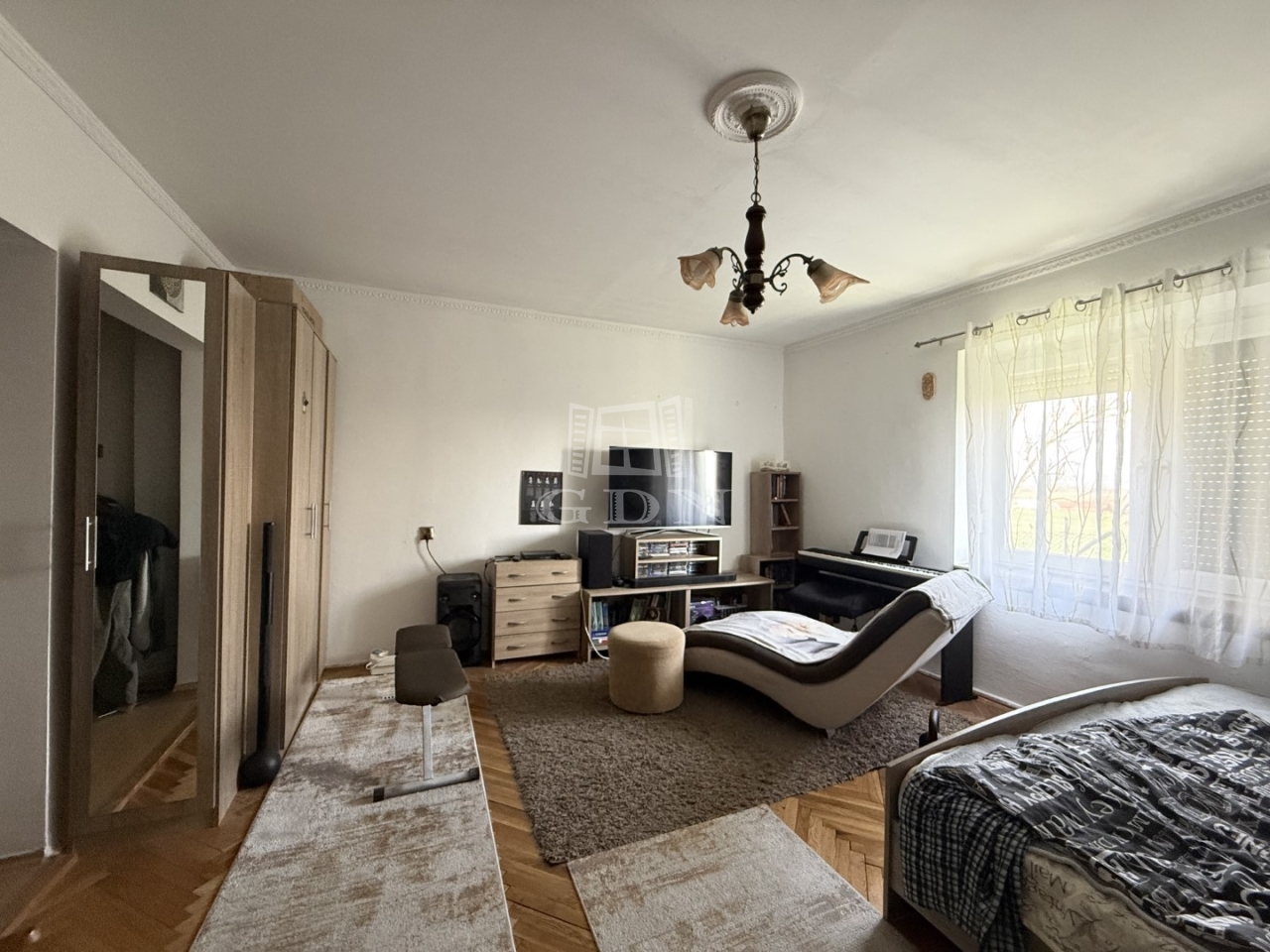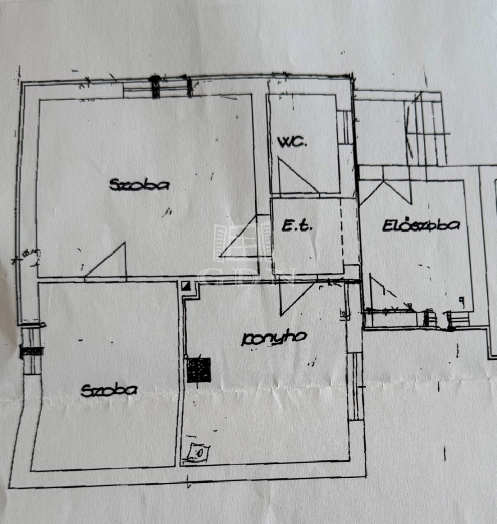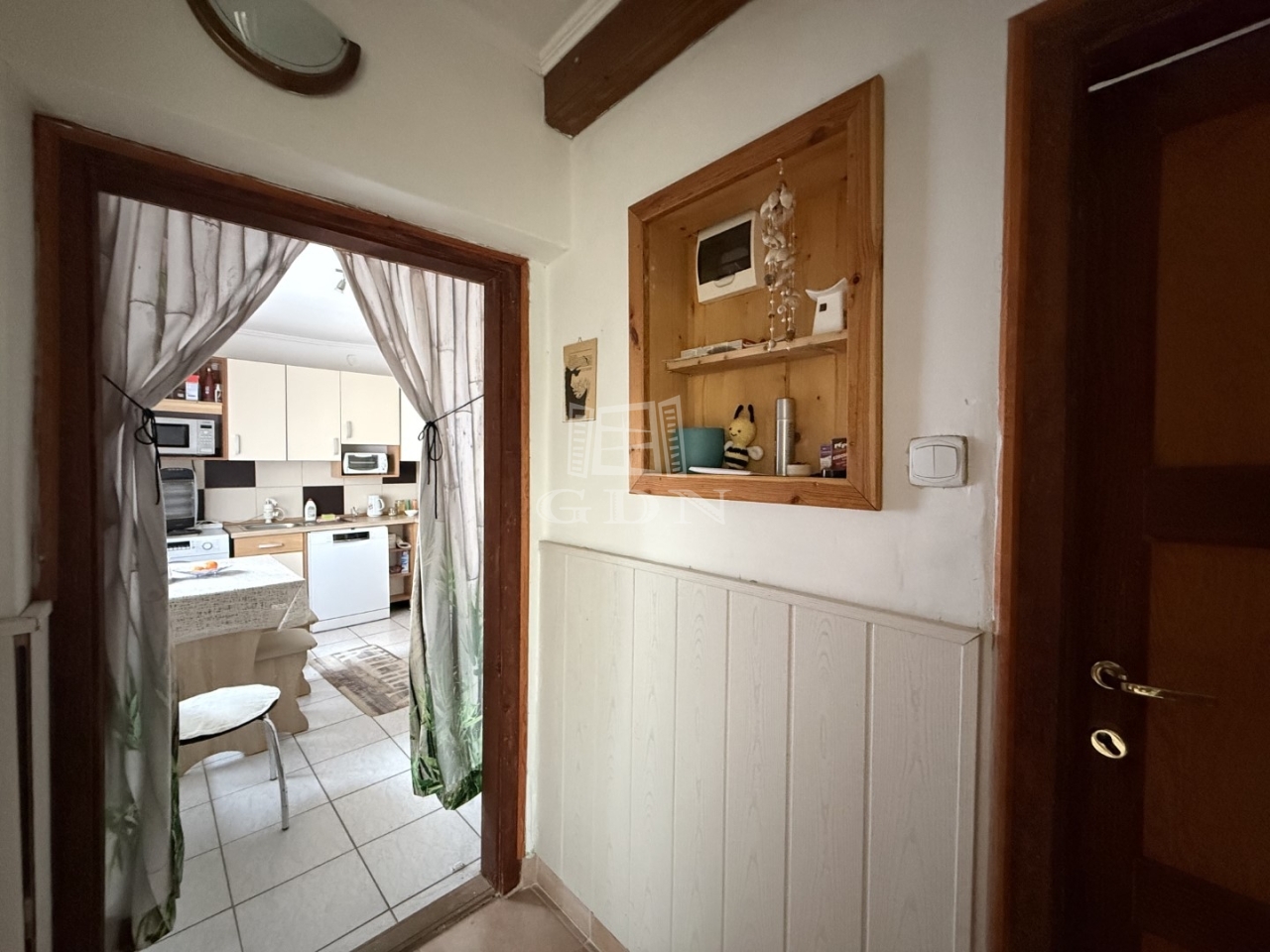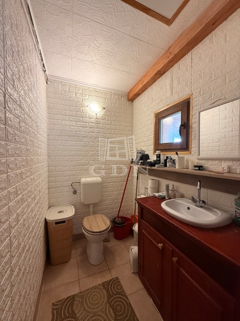Elosztása: előszoba, konyha, nappali +1 hálószoba, wc mosdóval. Fűtése cserépkályha + elektromos fűtőpanel.