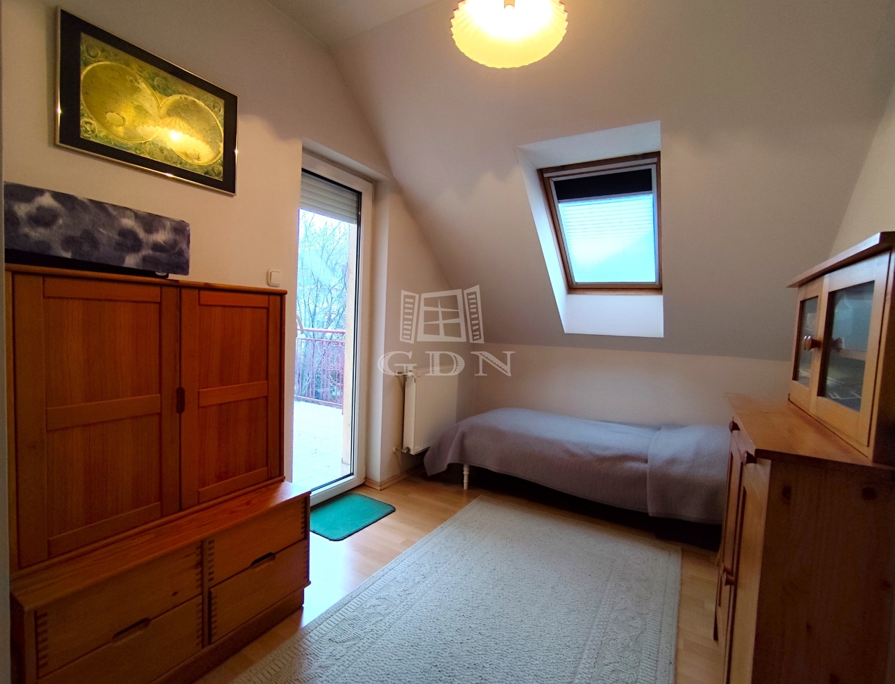 A tetőtéri szint igazi pihenőzóna. Jelenleg egybenyitott hálótérként funkcionál, de két külön gyerekszobává vagy háló + gyerekszoba kombinációvá is könnyen visszaalakítható.