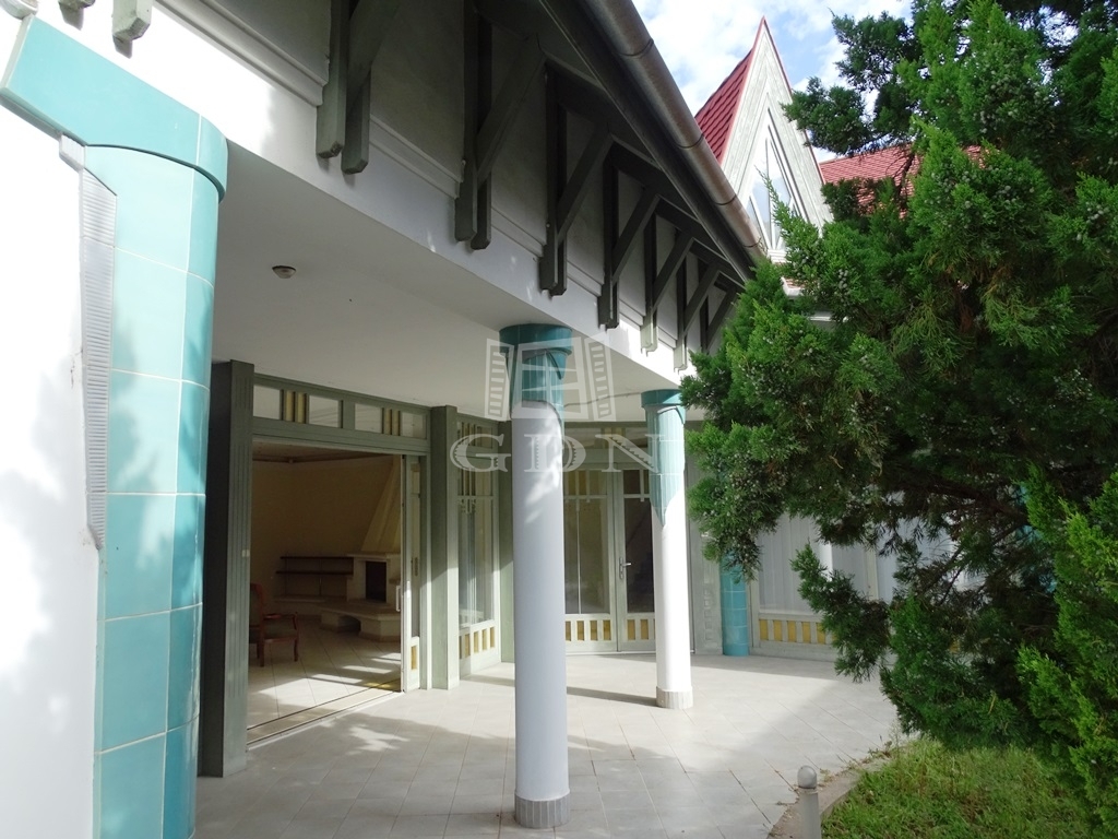 Az épületben a hatalmas, terasszal összenyitható, kandallós nappali, és a világos konyha mellett 6 szoba és 3 fürdőszoba található, exkluzivitását a különleges, A. VARGA IMRE festőművész által díszített beltéri medence adja, mellette egy nagyméretű szaunával.
