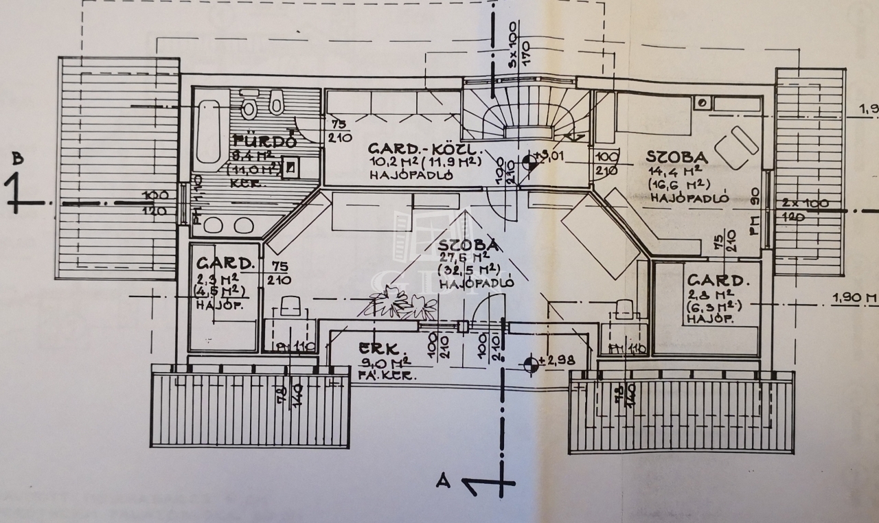 Az emeleten vendégszoba, két hálószoba gardróbbal, terasszal, fürdőszoba és előtér található.