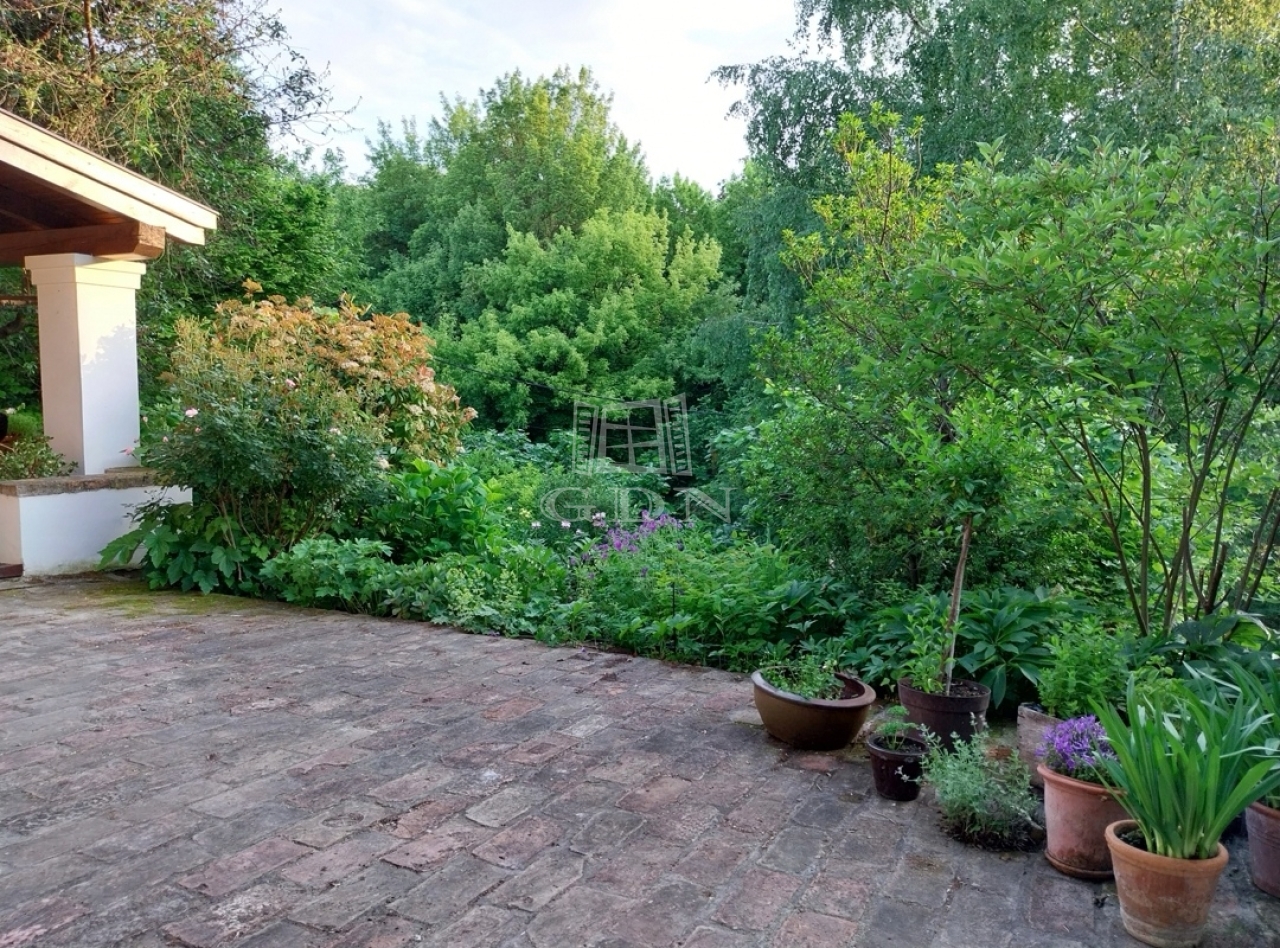 Budaörs Kamaraerdőn eladó egy kivételes hangulatú és adottságú, egyedi stílusú családi ház. A teleknek két utcáról van bejárata, elhelyezkedése olyan, mintha egy parkerdő közepén lenne, a házat minden oldalról romantikus kert öleli körül, ide néz és nyílik minden nyílászáró. Csak egy szomszédja van, a szemben lévő oldalon mogyorós, ős fák és kis tó található.
