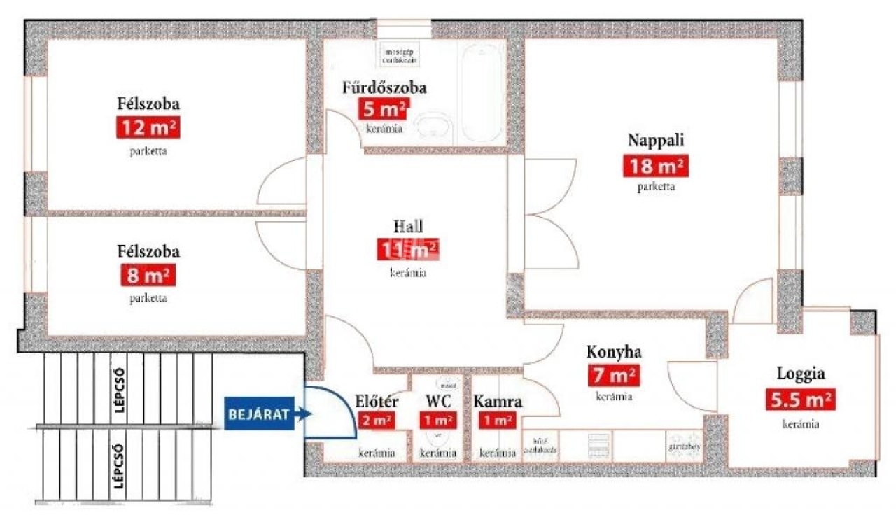 67 m2Alapterület 1 + 2 Szoba