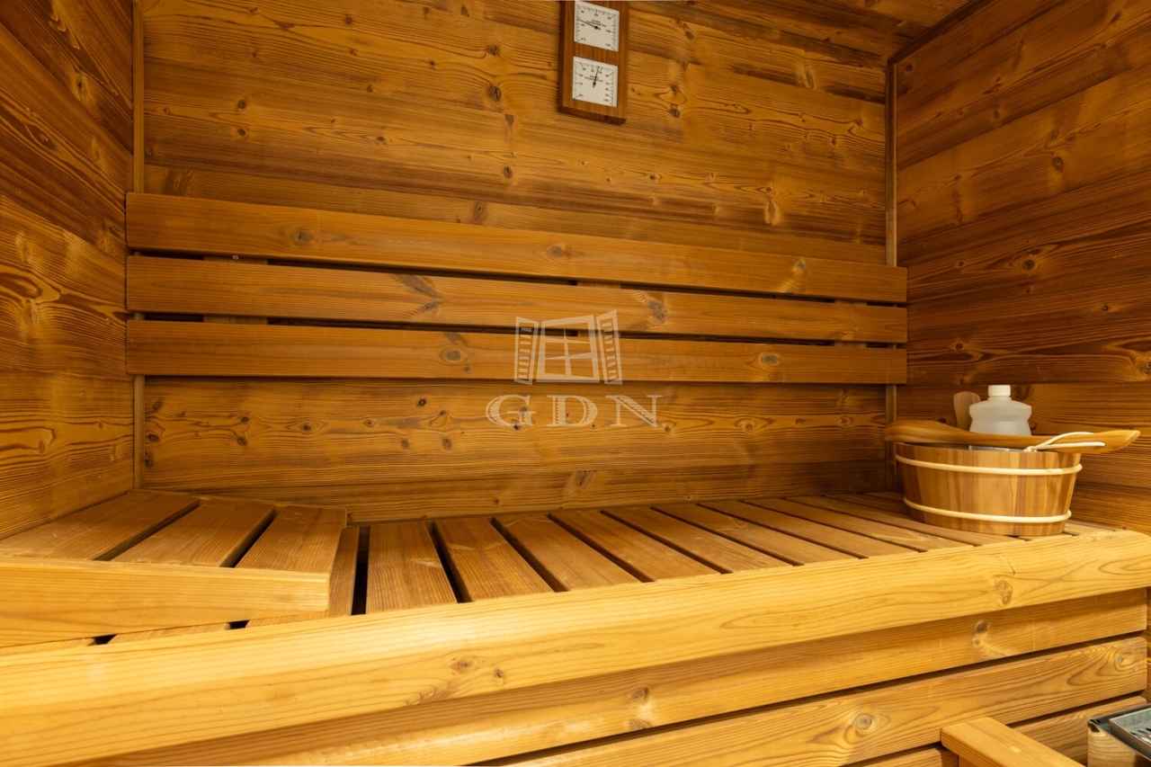 A felújítás során minden technikai részlet modernizálva lett: háromrétegű ablakok automata redőnnyel, hőszivattyús fűtés és klíma biztosítja a komfortot.
