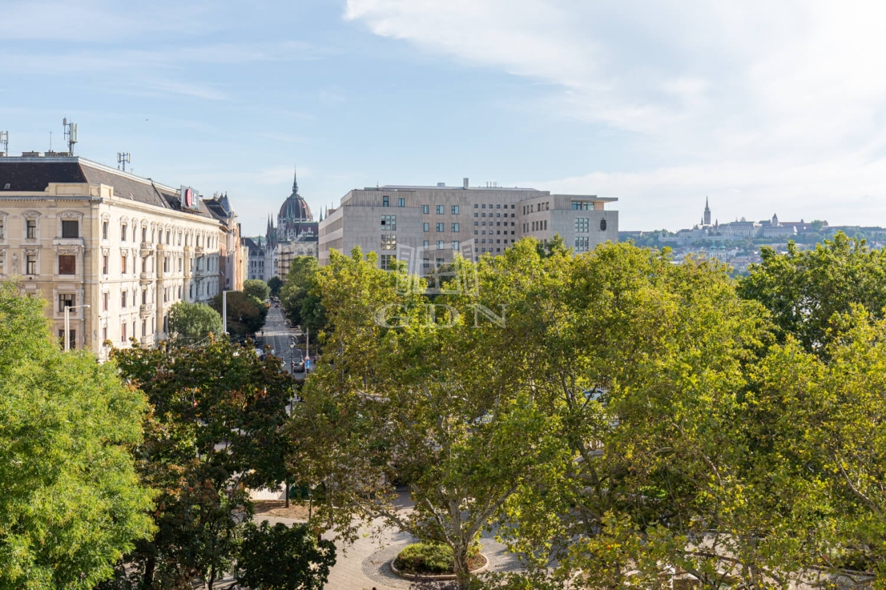 A tágas, világos nappaliból lélegzetelállító panoráma nyílik a Dunára, a Margit hídra, a Budai hegyekre és a Margitszigetre, míg a fő hálószobából a Parlament, a Mátyás-templom és a Budai Vár látványa tárul elénk. A két kisebb szoba ideális dolgozónak, vendég- vagy gyerekszobának.