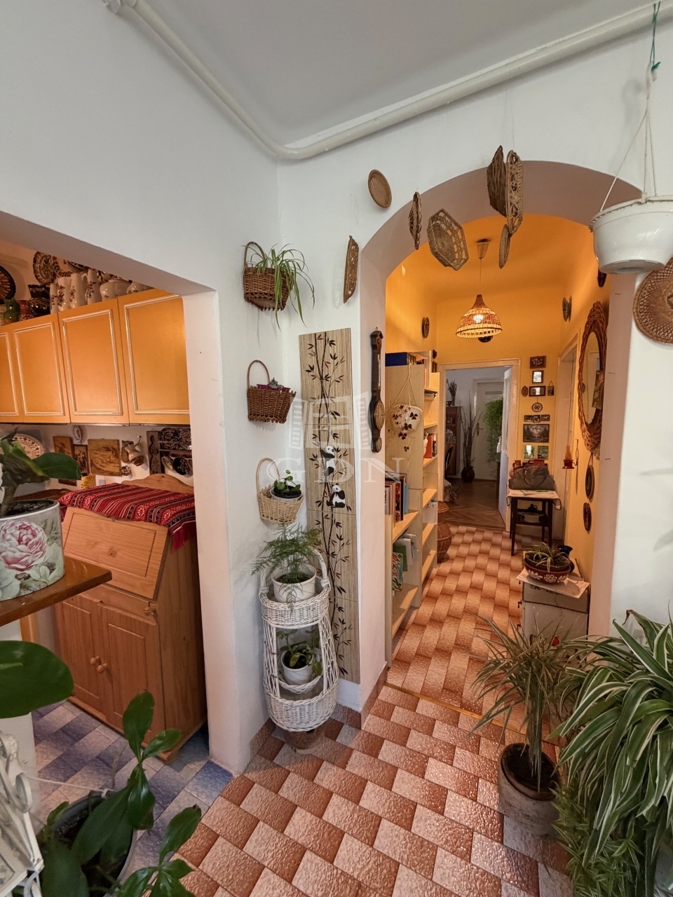 Az ingatlan 2 különálló épületből áll, az első, utcafronti épület 80m2-es, egy tágas hallba érkezünk, ahonnan nyílik a főzőfülke, majd egy közlekedőn keresztül jutunk a fürdőbe és a 3 szobába.