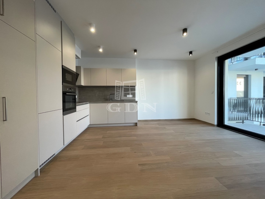 BL-003375. Belvárosban, modern akadálymentes, 2 lifttel ellátott társasházban 50 nm nagyságú, 6 nm-es erkéllyel rendelkező, amerikai konyhás nappali + 2 fél szoba elosztású lakás gépesítve, részben vagy egészben bútorozva (igény szerint), (jelenleg a képeken látható berendezési tárgyak találhatók meg), SMART HOME rendszerrel szerelve, valamint az épület alatt található teremgarázsban 1 autó számára biztosított beálló hellyel együtt hosszútávra kiadó.