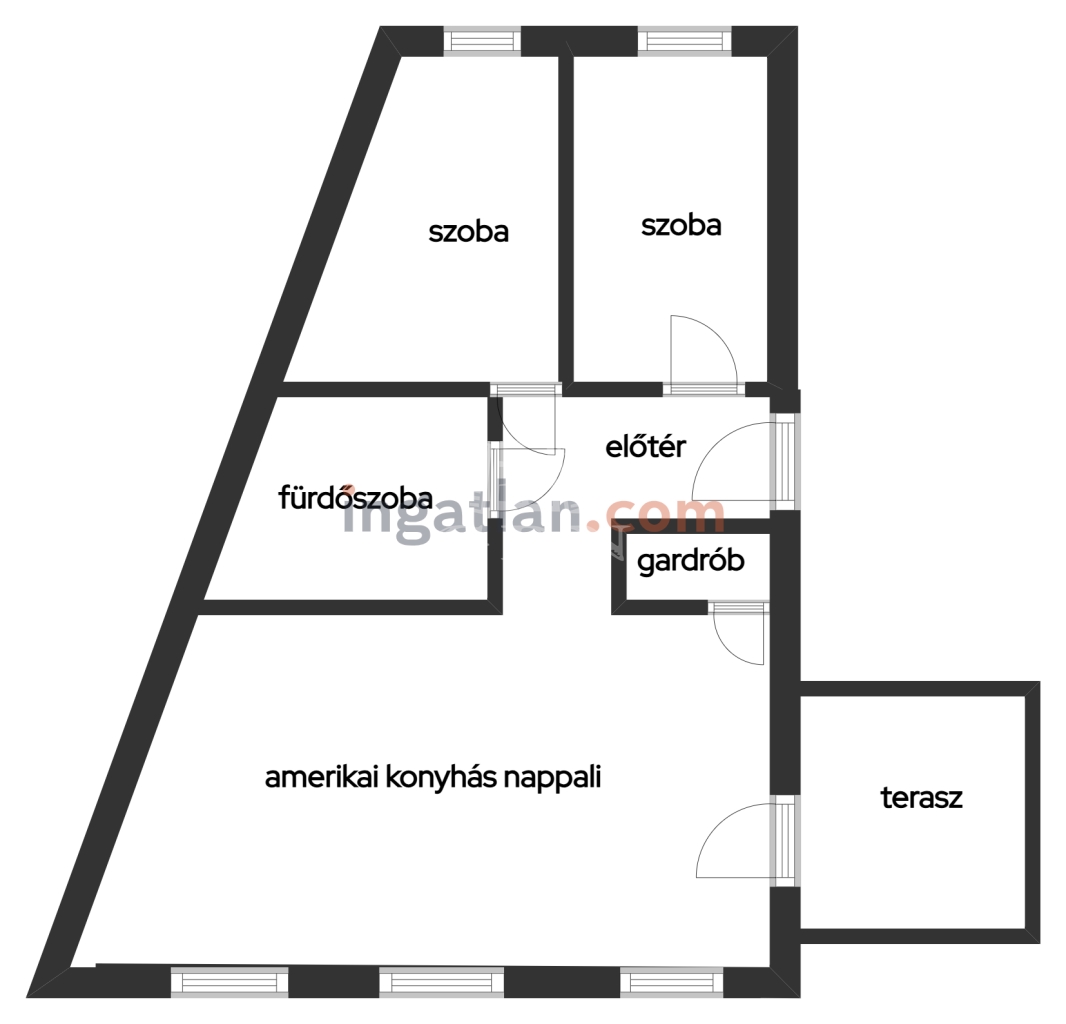 • Amerikai konyhás nappali + 2 külön nyíló, tágas szoba
