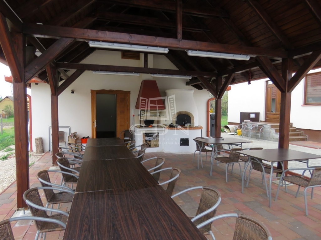 ▪ igényesen kialakított fedett terasz (35m2) nagy borospincével (55m2), mellékhelyiségekkel