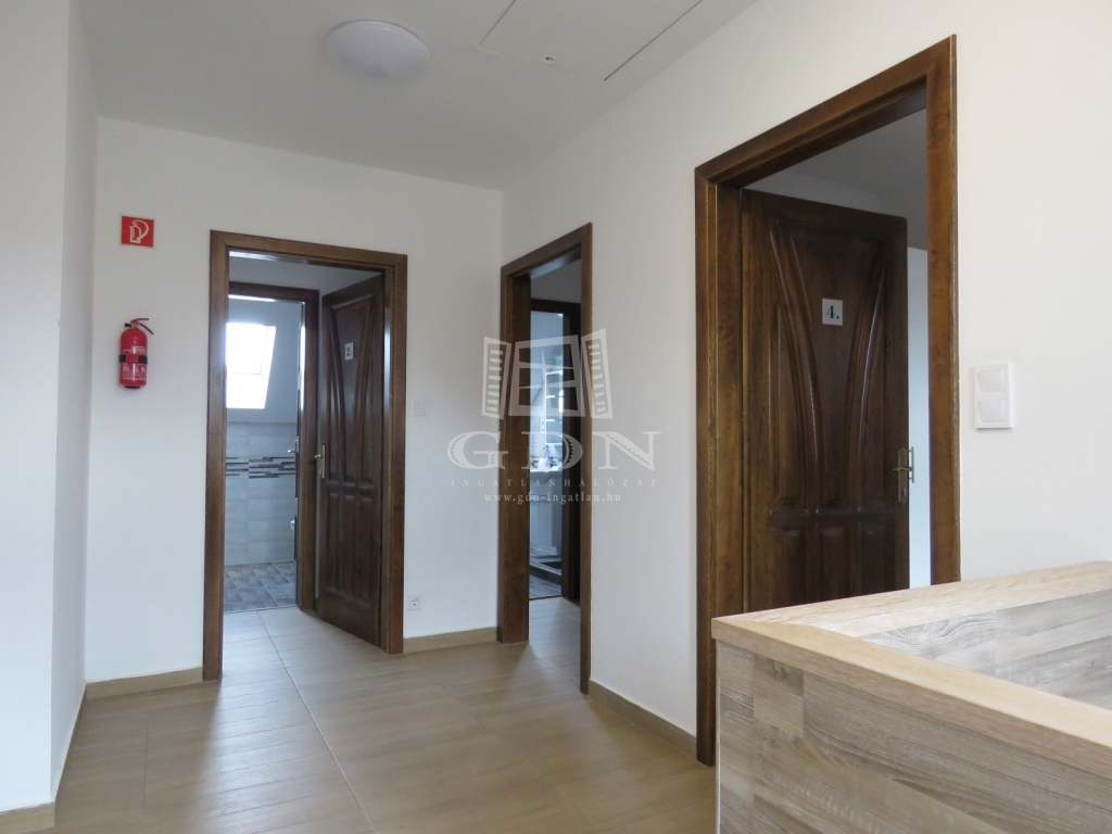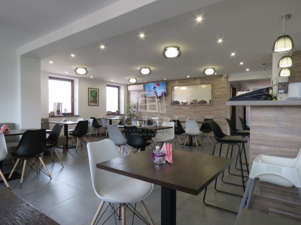 A vendéglátóhely földszintjén egy tágas vendégfogadó tér-étkező, bárpult, női és férfi mosdó, melegkonyha és egyéb kiszolgáló helyiségek kaptak helyet, az emeleten pedig négy (2db 4 ágyas és 2db 3 ágyas), önálló fürdőszobás apartman, illetve egy takarító helyiség került kialakításra.