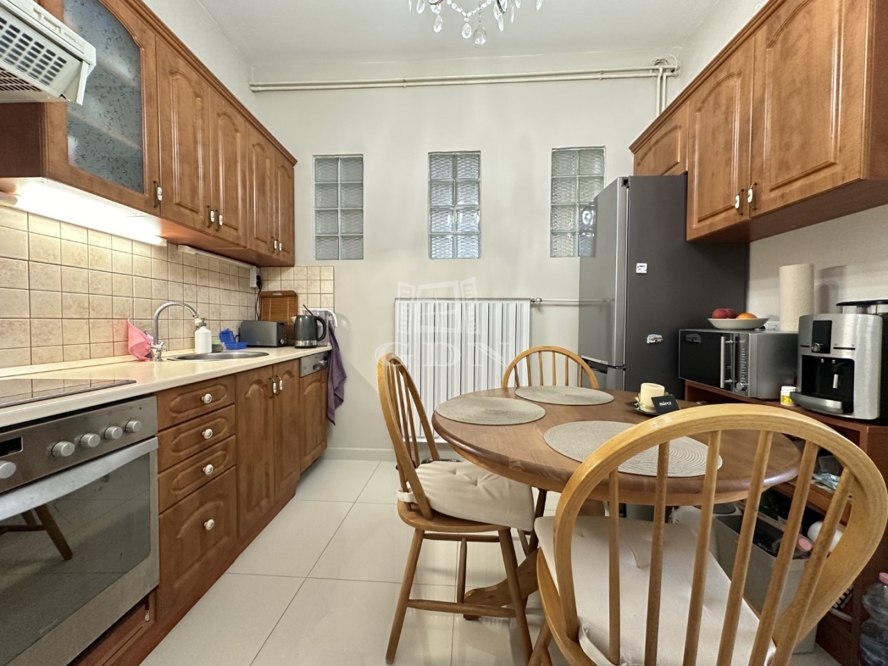 A modern konyha minden fontos géppel felszerelt. A beépített szekrények minőségi anyagból készültek, maximális kihasználtsággal lettek a lakásba tervezve. A nagy méretű, ablakoknak köszönhetően a helyiségek nagy világosak.